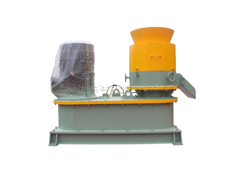 The pretreated material enters between the flat die and the pressing wheel through the feeding device. The pressing wheel rotates under power drive, exerting pressure on the material, so that the material overcomes the resistance of the die hole and is squeezed into columnar particles and squeezed out of the die hole.
