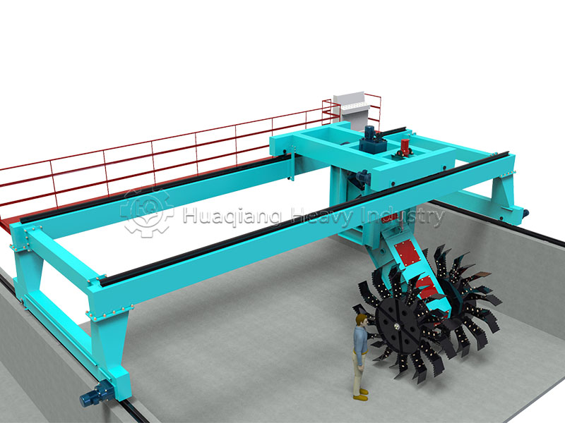 This equipment utilizes a continuously rotating large wheel design, allowing for wide coverage and high efficiency in a single turning operation. Compared to traditional trough-type or crawler-type compost turners, it is more suitable for large-scale windrow fermentation in organic fertilizer production bases with a capacity of 10,000 tons or more, significantly reducing labor and time costs for large-scale fermentation.